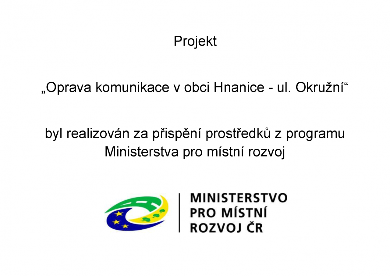 Projekt byl realizován za přispění prostředků z programu Ministerstva pro místní rozvoj.