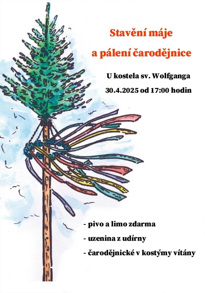 Ve středu 30.4.2025 budeme u kostela sv. Wolfganga v Hnanicích od 17:00 hodin ručně stavět naši tradiční máji. Prosíme tedy všechny hnanické chlapy o pomoc. Po vztyčení máje proběhne symbolické pálení čarodějnice. K občerstvení bude připraveno pivo Wolfgang a točená limonáda.