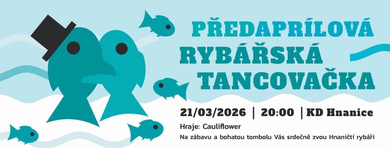V sobotu 21.3.2026 se od 20:00 hodin uskuteční v kulturním domu Hnanice předaprílová Rybářská tancovačka. Hraje zábavová kapela Cauliflower Band a těšit se určitě můžete i na bohatou tombolu.
